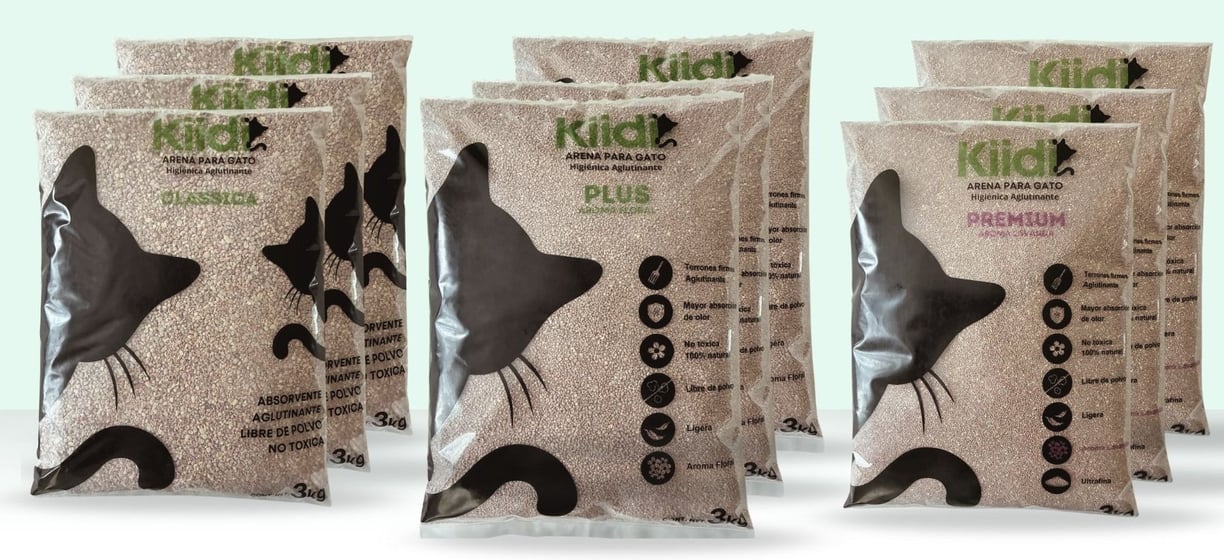 Arena higienica, 100% natural, No toxica, Libre de polvo, Aglutinante, Buen grado de absorción de liquidos.